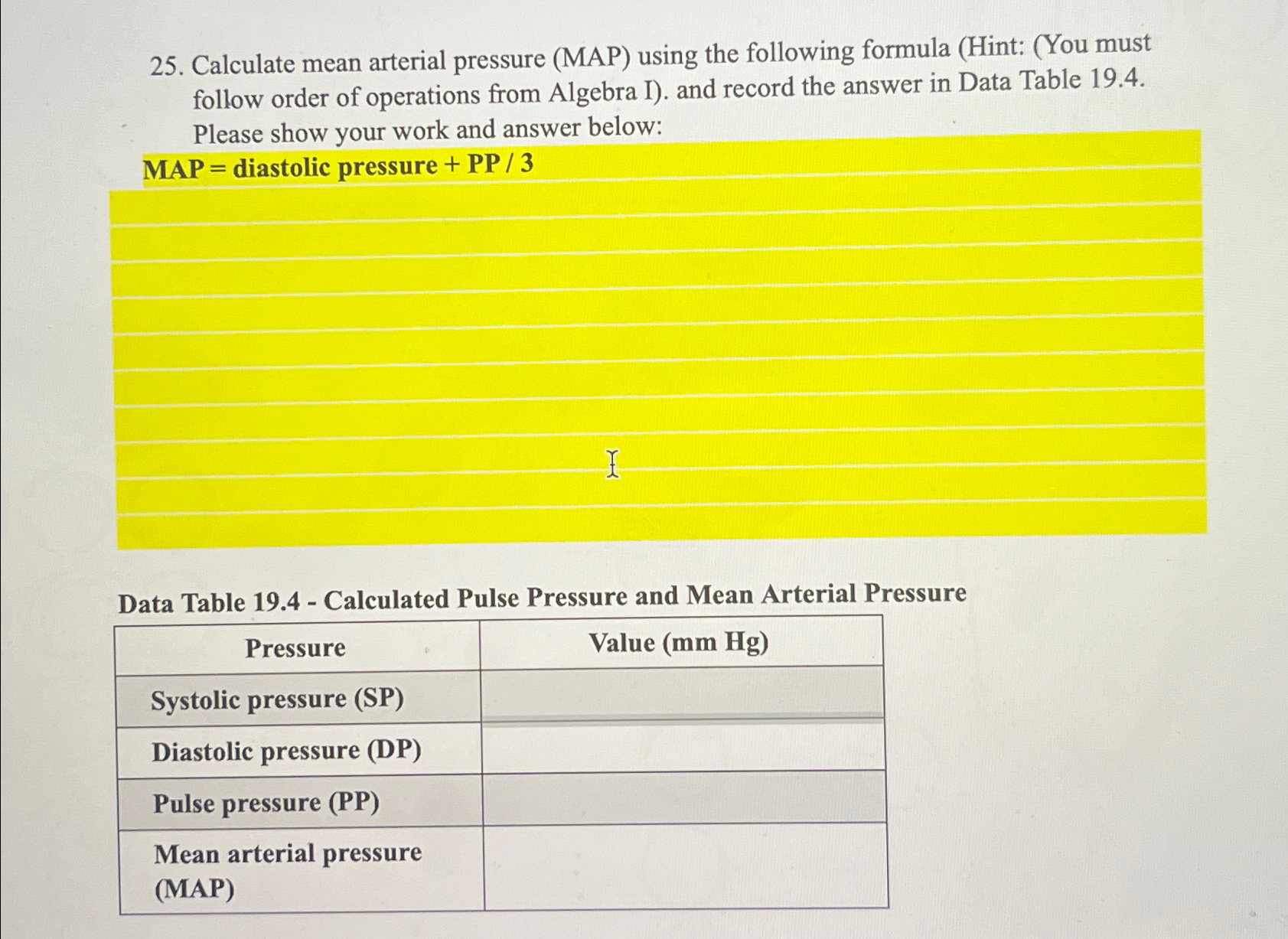 Calculate mean arterial pressure MAP using the Chegg Very well made.