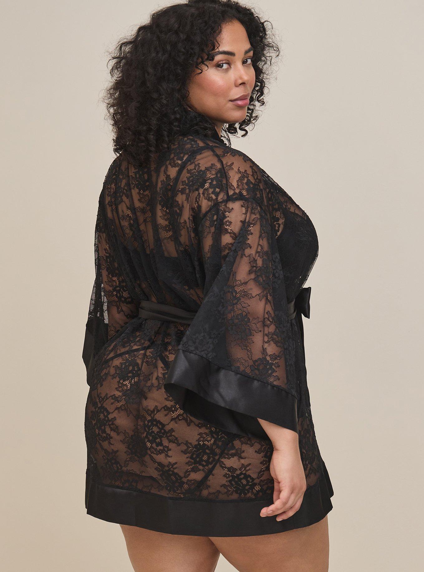 Plus Size Lace Midi Kimono Sleeve Lingerie Robe Torrid Very well made.
