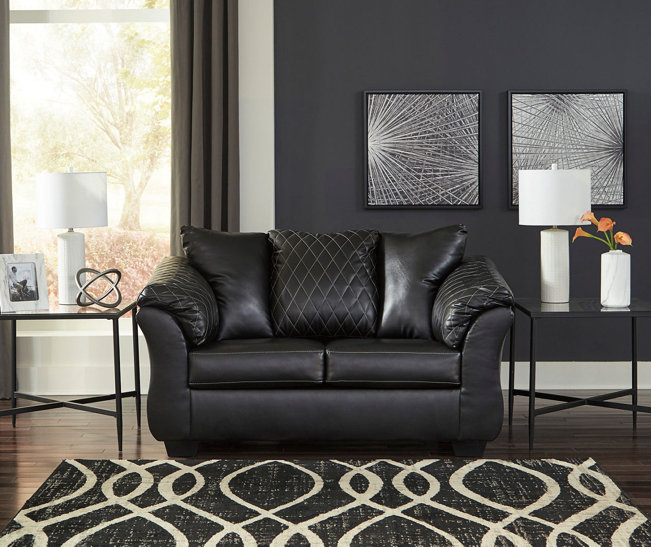 Signature Design By Ashley Betrillo Black Faux Leather Loveseat Very well made.
