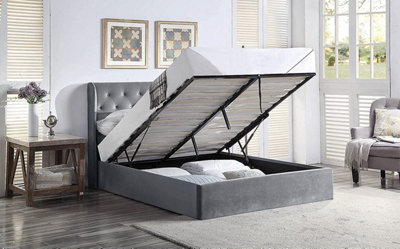 Velvet Double Ottoman Bed Frame Tall Winged Headboard Deluxe Grey Very well made.