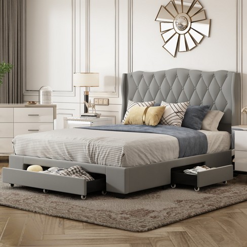 Queen Size Storage Bed Velvet Upholstered Platform Bed with Very well made.