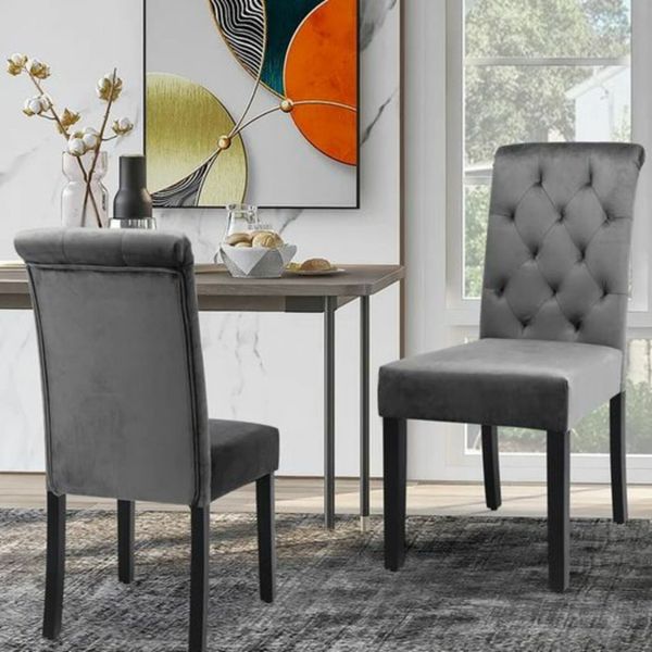 Garnet Set of 2 Dark Grey Velvet Upholstered Dining Chairs with Very well made.